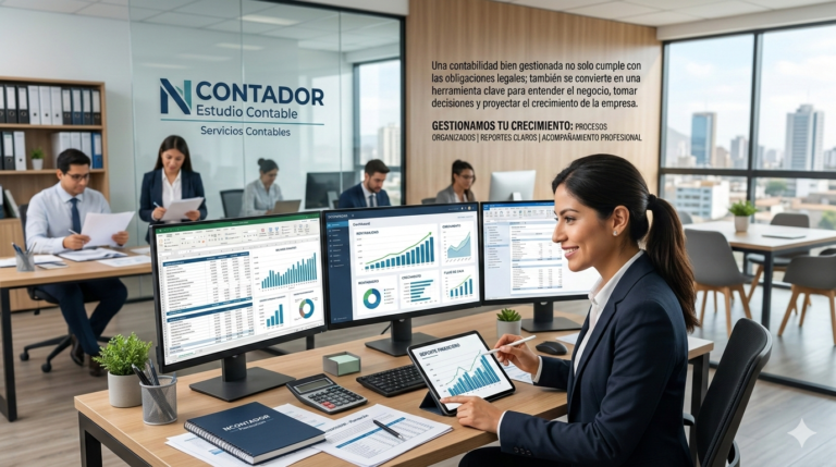 Una contabilidad bien gestionada no solo cumple con las obligaciones legales; también se convierte en una herramienta clave para entender el negocio, tomar decisiones y proyectar el crecimiento de la empresa. En NCONTADOR Estudio Contable gestionamos la contabilidad de tu empresa con procesos organizados, control permanente y reportes financieros claros, brindando acompañamiento profesional continuo para que tu información contable esté siempre actualizada y confiable. Nuestro enfoque combina disciplina contable, cumplimiento oportuno y análisis financiero, permitiendo que los empresarios tengan mayor claridad sobre la situación real de su negocio y puedan tomar decisiones con información precisa.